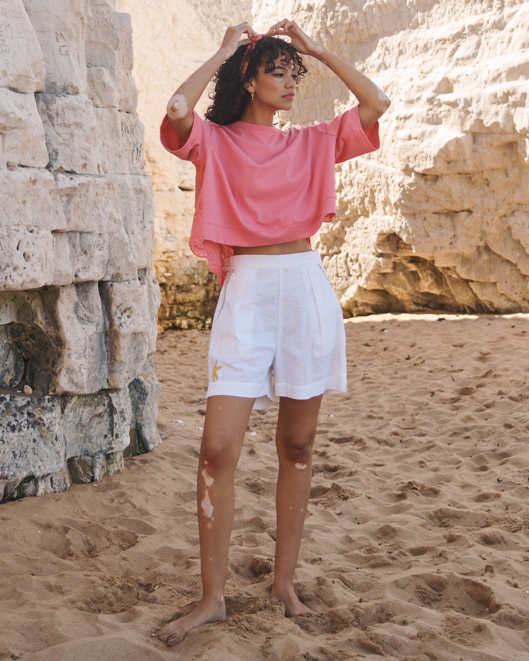 A strong focus on natural materials and quality craftsmanship designed to withstand the wear and tear of modern life. Flattering workwear pieces, vintage-inspired heritage knitwear and vibrant cotton tees, accented by pops of colour and folksy prints.