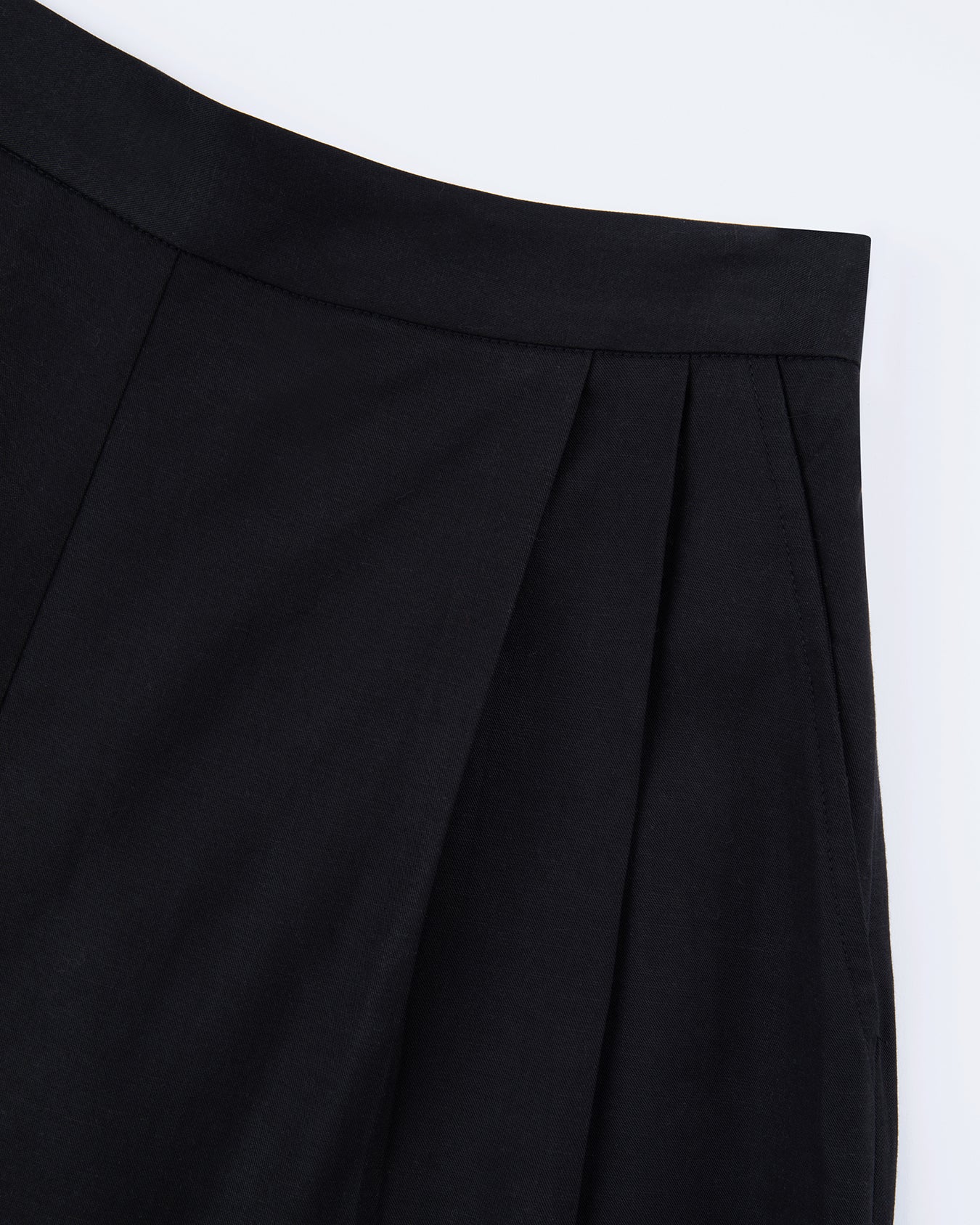 FEATURES: Flat front waistband, elasticated back, pleats at the front, cropped length.