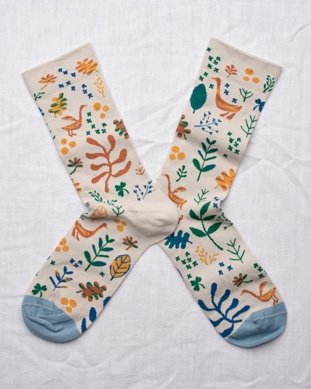 A strong focus on natural materials and quality craftsmanship designed to withstand the wear and tear of modern life. Flattering workwear pieces, vintage-inspired heritage knitwear and vibrant cotton tees, accented by pops of colour and folksy prints.