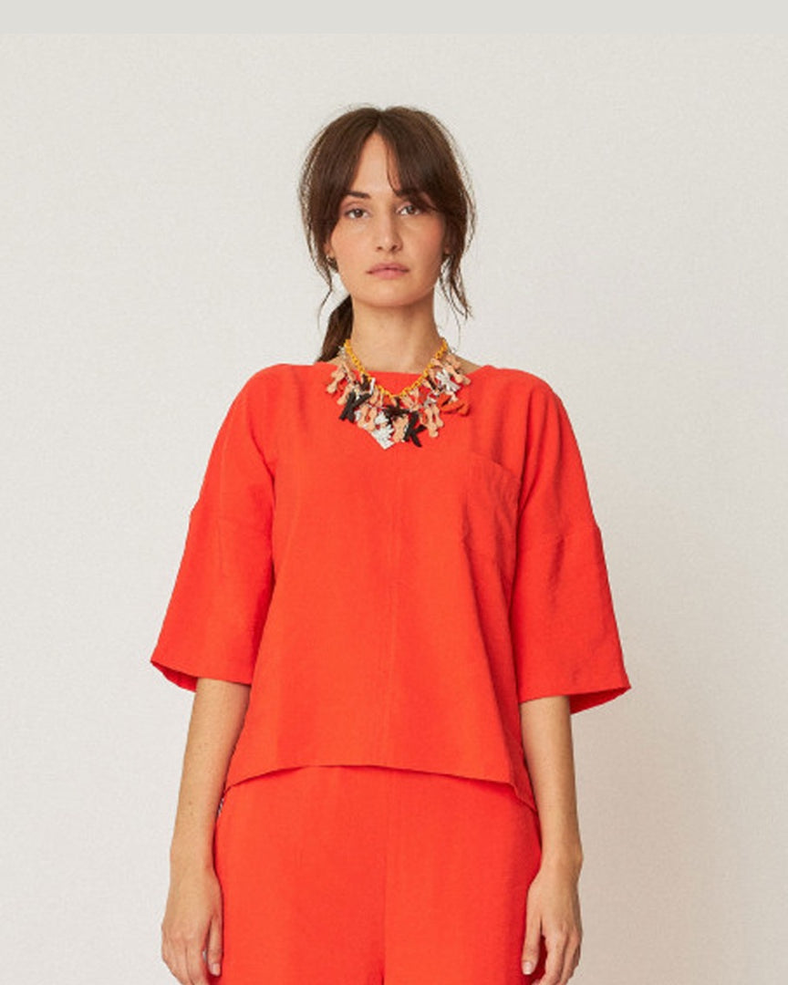 A strong focus on natural materials and quality craftsmanship designed to withstand the wear and tear of modern life. Flattering workwear pieces, vintage-inspired heritage knitwear and vibrant cotton tees, accented by pops of colour and folksy prints.