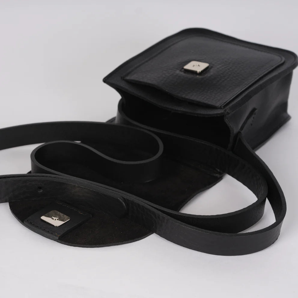 The Half Hull Bag is inspired by the curved bottom of a ship. It may look small but you would be surprised what you can fit in it... sunglasses, your phone, keys and other essentials. Made in England from Italian vegetable tanned leather, it features a minimal hidden magnet closure and has an adjustable buckle strap.