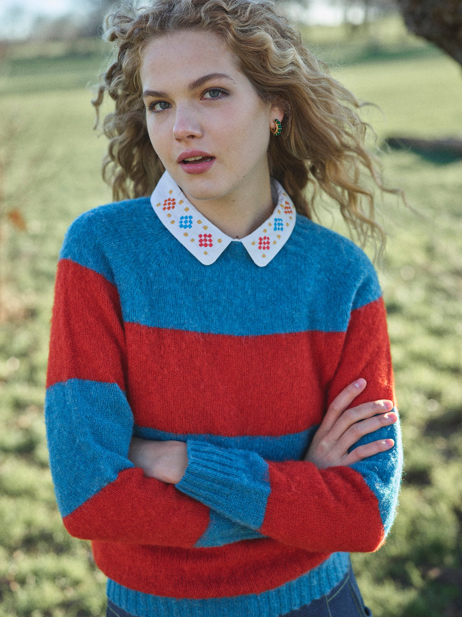 Lowie’s much-loved brushed stripe jumpers are made in Peterhead, a small fishing port in Scotland, by one of the few remaining knitwear suppliers in the UK. Knitted from 100% Scottish spun lamb’s wool with bold horizontal block colour design and finished with cosy ribbed-knit hemline and ribbed trim around neck and wrist.