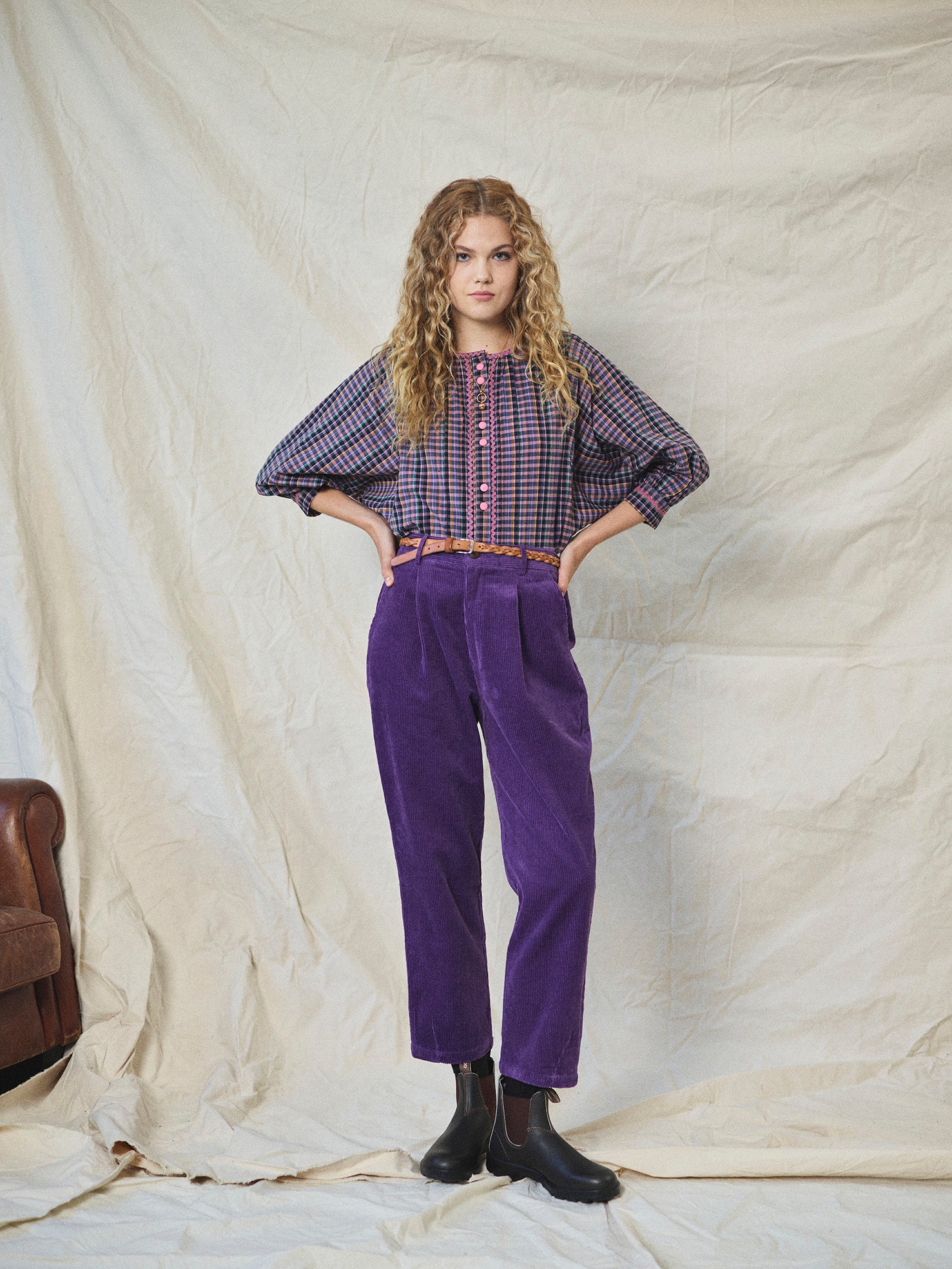 Back for another season, our bestselling easy shaped trouser in purple has been given a sumptuous update. Crafted from a mid-weight silky cotton corduroy and shaped to a flattering and elegant style. Featuring a 4-pocket design, belt loops and pleats that fall from the waist to create a tailored silhouette.