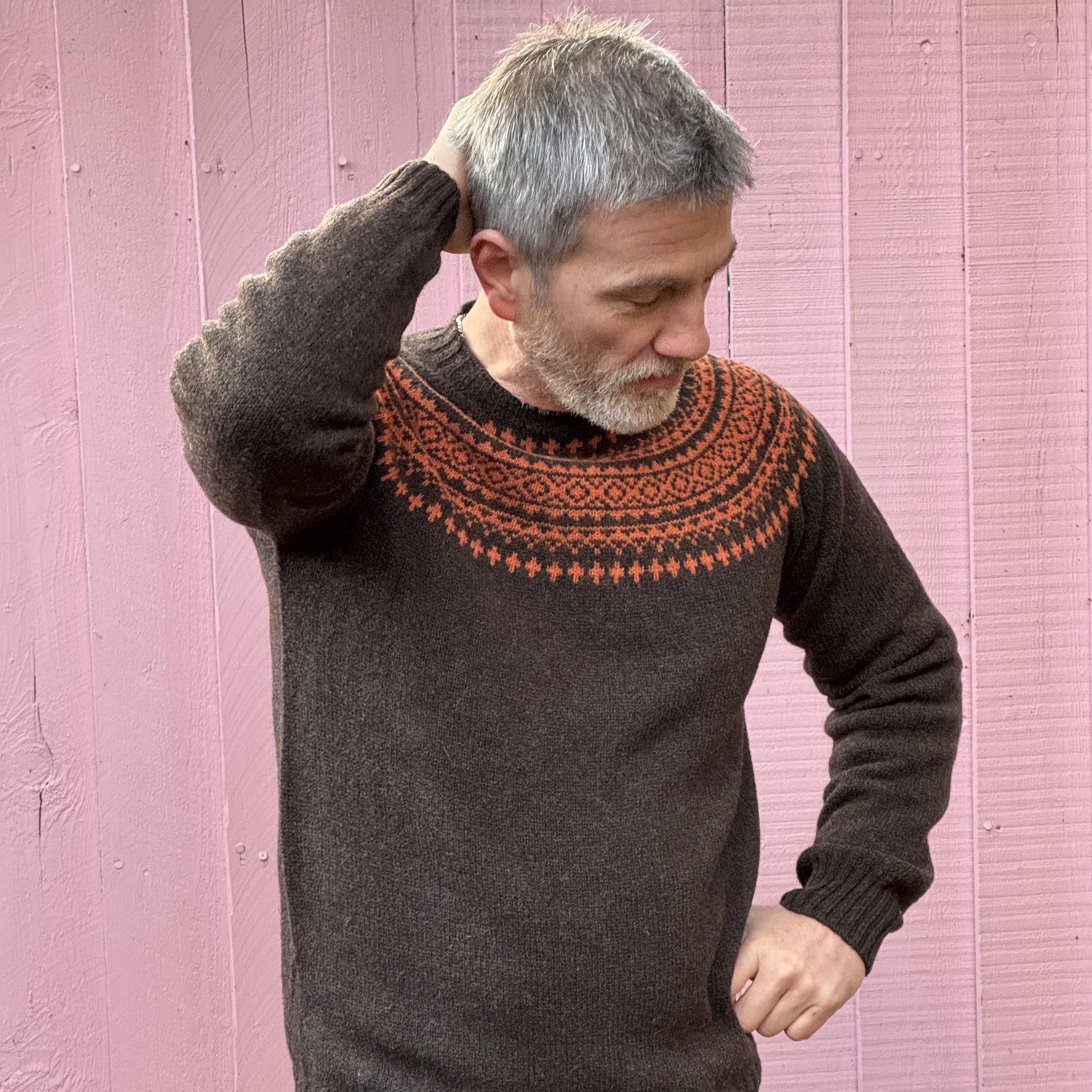Lowie Mens Chocolate + Orange Fairisle Jumper