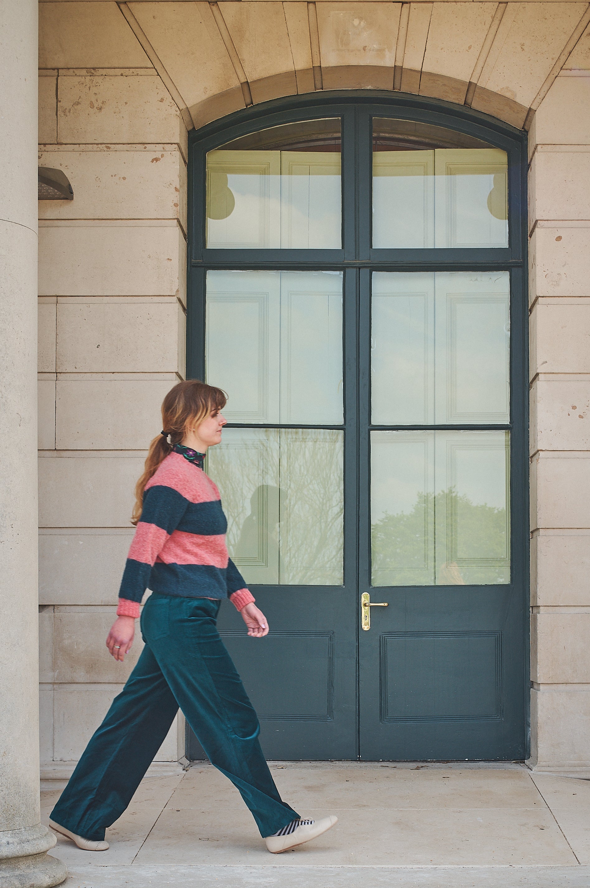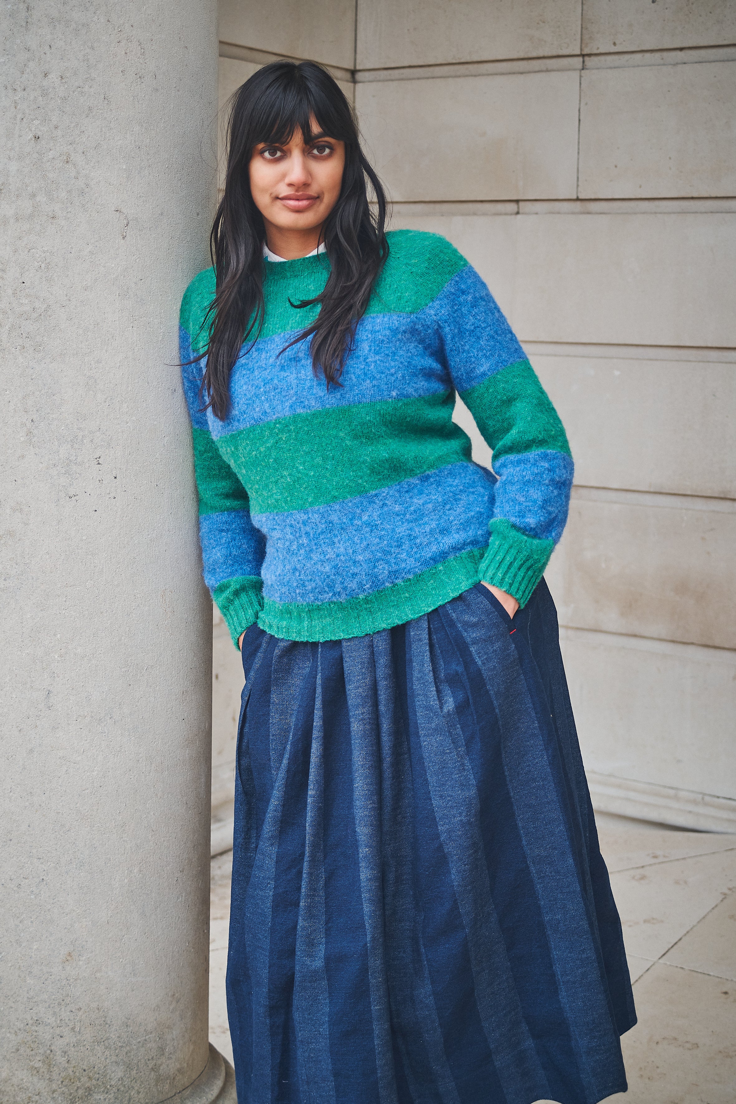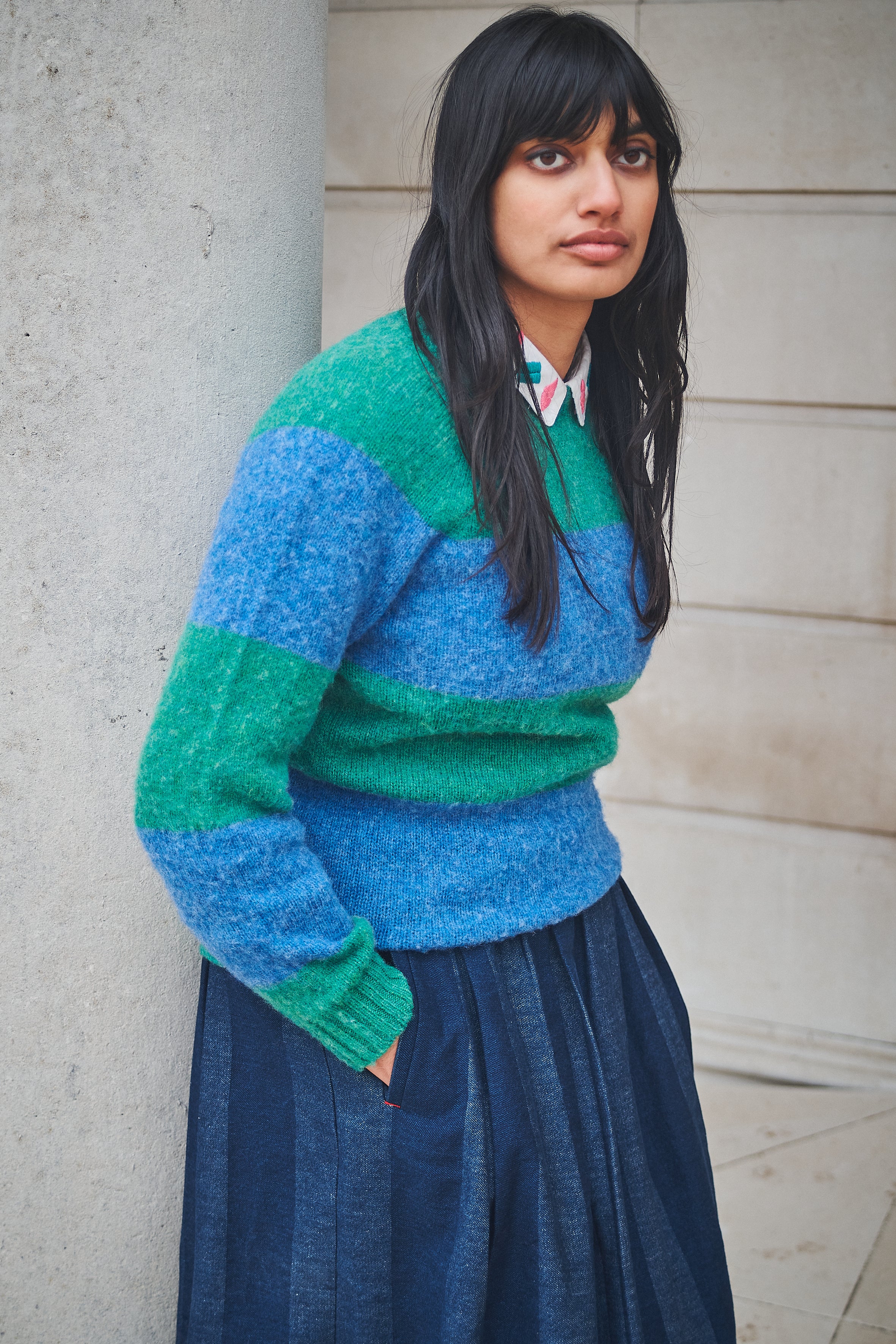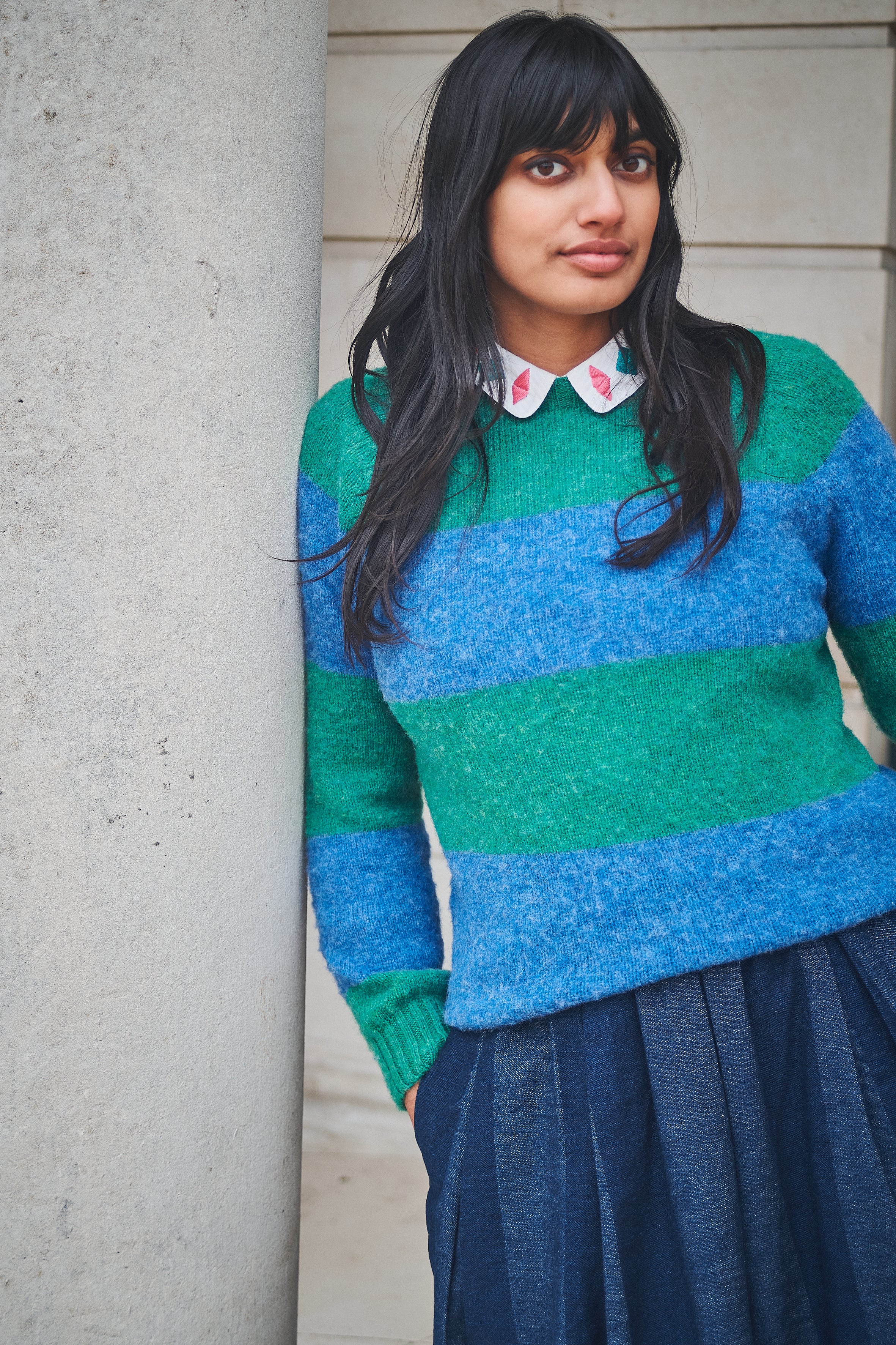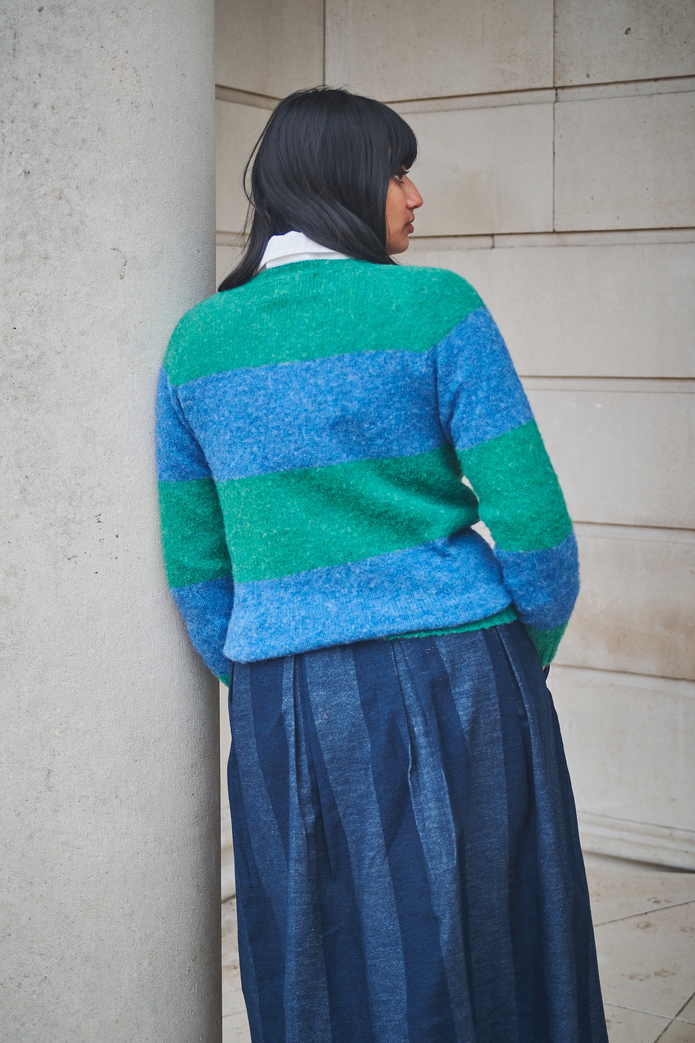 Lowie Green + Mid Blue Stripe Scottish Jumper
