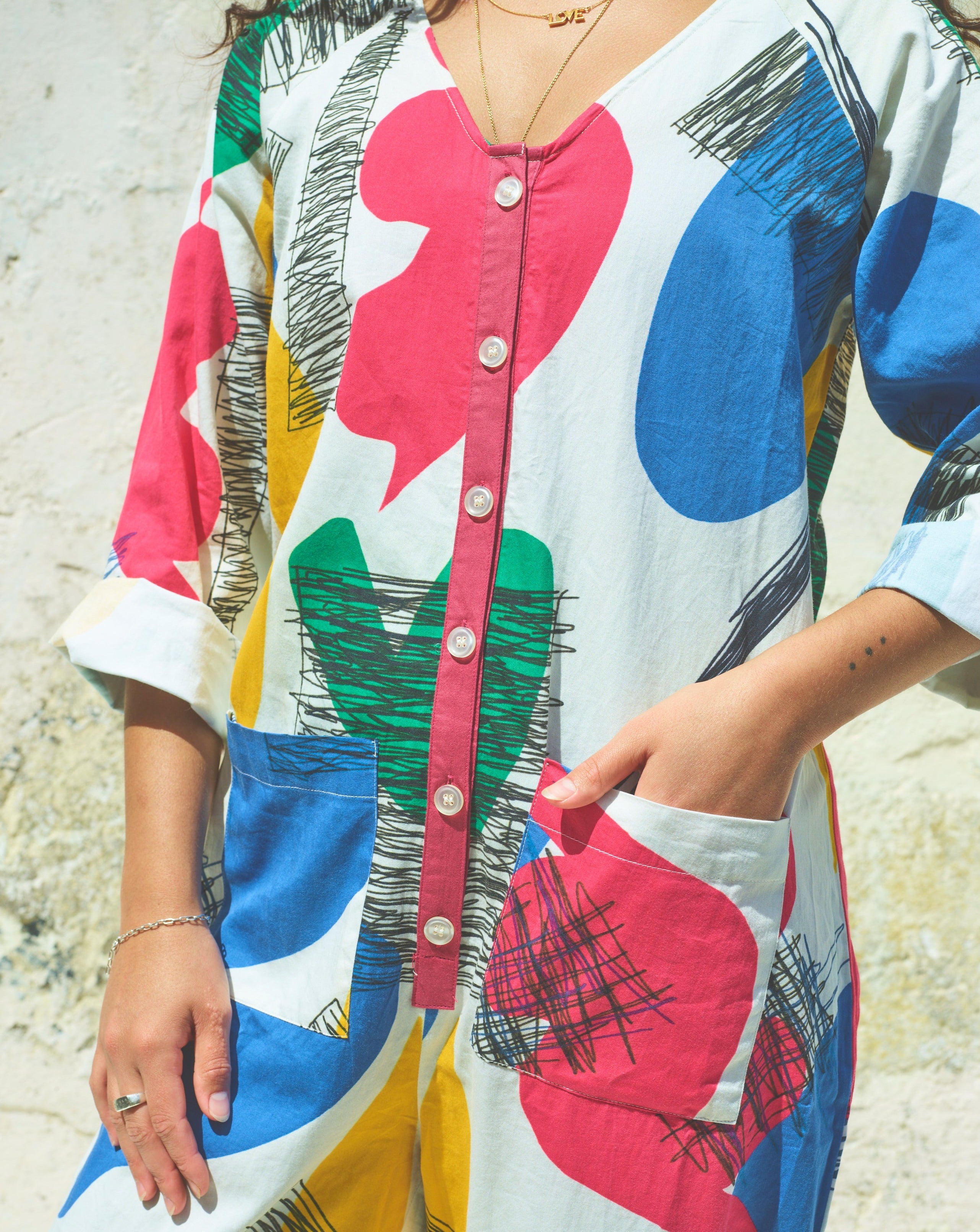 Miss Pompom is an independent clothing and accessories label known for its bold, geometric and colourful patterns. It's also proudly our sister brand with a strong environmental focus including using vegan yarns and organic cotton and giving generously to environmental charity EJF.