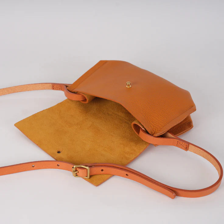 CARE: Vegetable-tanned leather is a natural material that develops a unique patina over time. Lighter colours may change more noticeably with age. To help maintain the original tone, avoid prolonged direct sunlight and store in a dust bag when not in use. As each piece is cut from natural leather, slight variations in texture and tone are part of its character. Occasionally treat with leather food to nourish and protect the leather. Darker colours may transfer onto lighter fabrics.