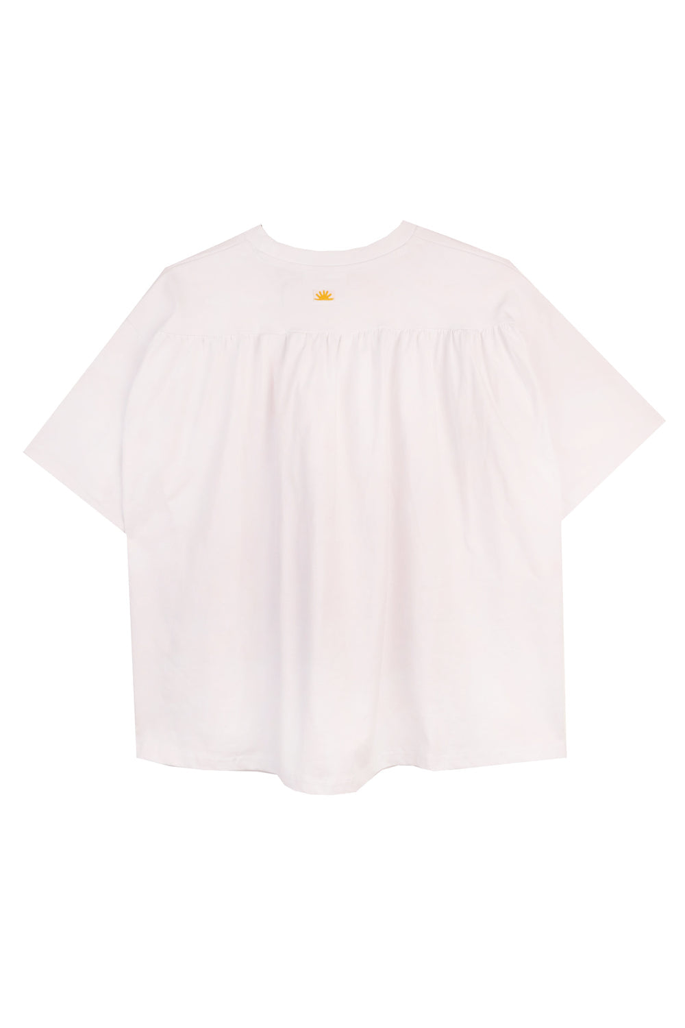 The Peyton Top is a twist on a classic t-shirt with a gathered back yoke, crafted from soft cotton jersey. Finished with our mini sun woven patch logo on the back neck.