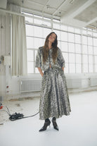 Complete your festive look with this vintage-inspired gold jacquard skirt, crafted from the same shimmering metallic on black fabric as the matching jacket. The textured lightweight jacquard adds effortless glamour, while the relaxed a-line silhouette ensures easy movement. Designed with comfort in mind, the skirt features an elasticated waist with a functional drawstring, plus practical side pockets. Fully lined for a smooth feel, its the perfect blend of style for the holiday season.