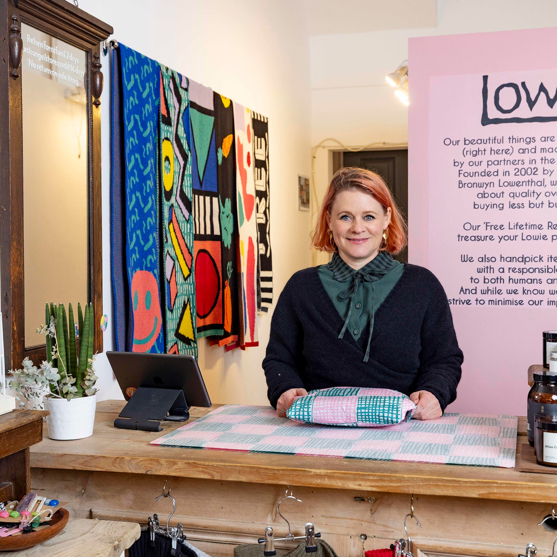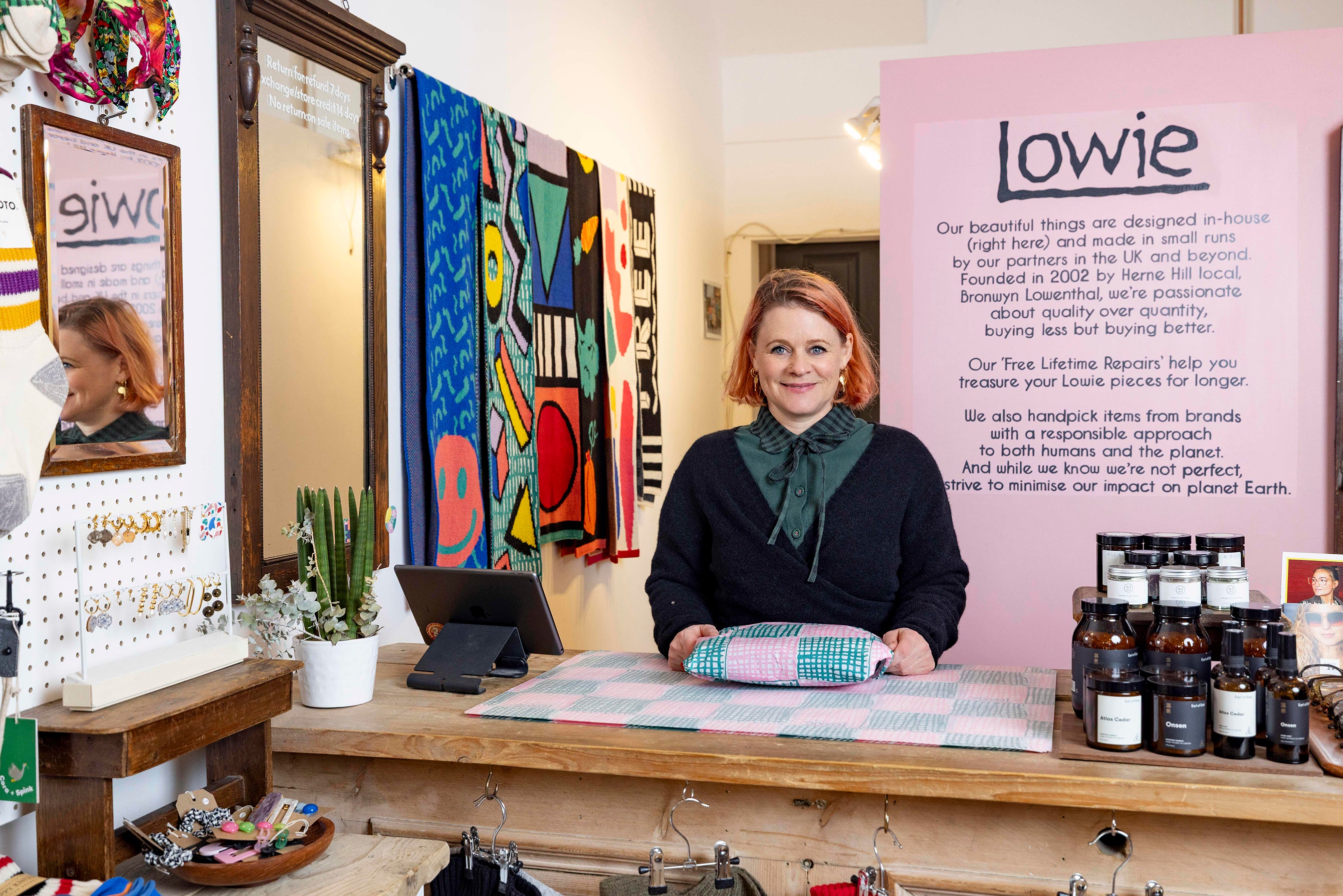 In Turkey, she fell in love with their traditional hand-knitting and brought socks and slippers back for friends. These socks, made from colourful scraps of yarn, became the first Lowie product—the Lowie Turkish Socks. Set up on a shoestring in 2002, with stalls at London's Portobello and Spitalfields markets, Bronwyn began to design her own Lowie knit accessories collections. Over two decades later, Lowie has grown from a knitwear accessories brand to a vibrant womenswear label releasing thoughtfully made products throughout the year.