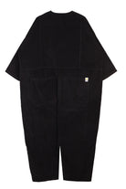 FEATURES: Boilersuit, cotton corduroy, long sleeves, silver front zip, utility pockets, woven patch logos, oversized and spacious fit.