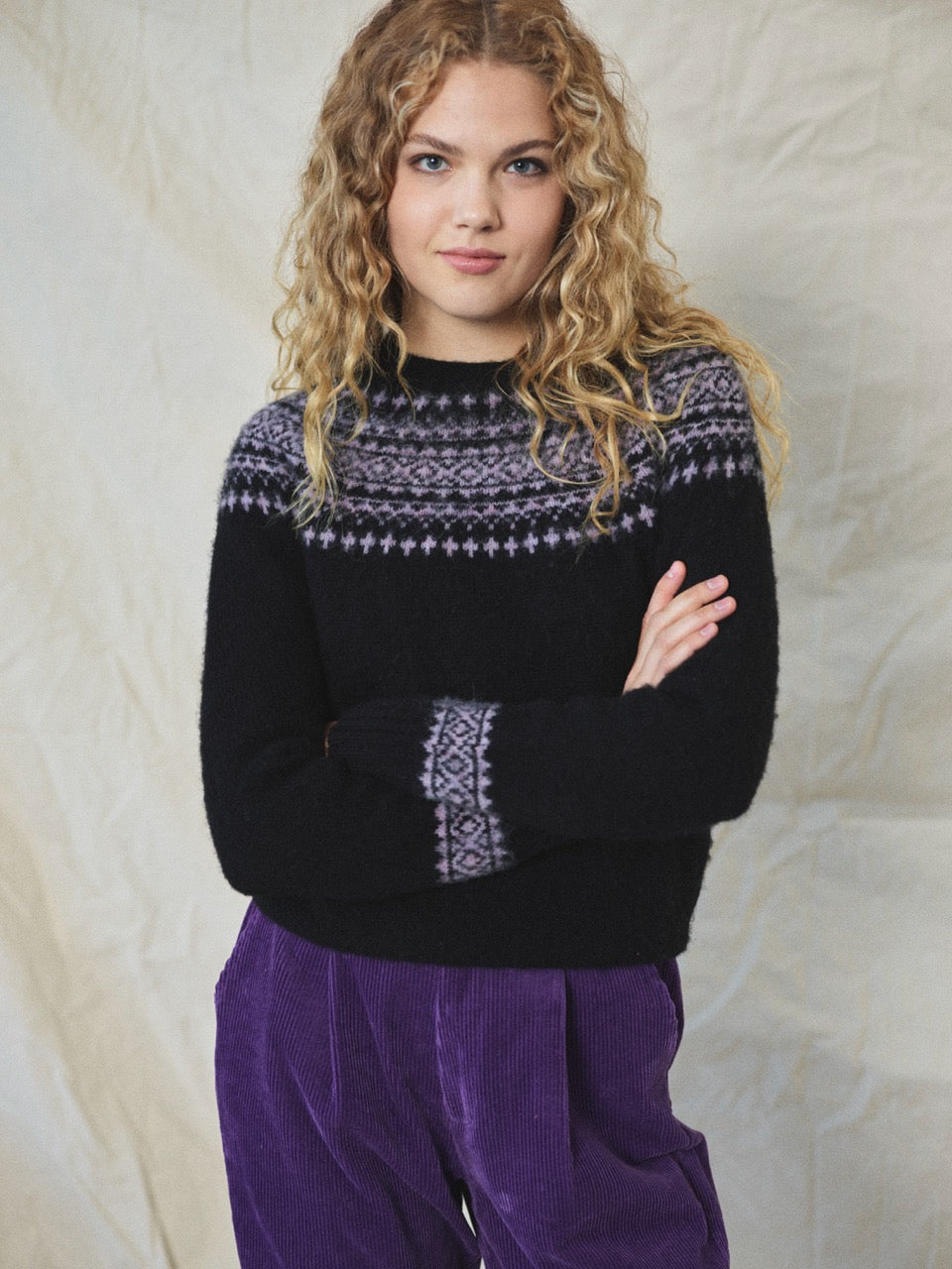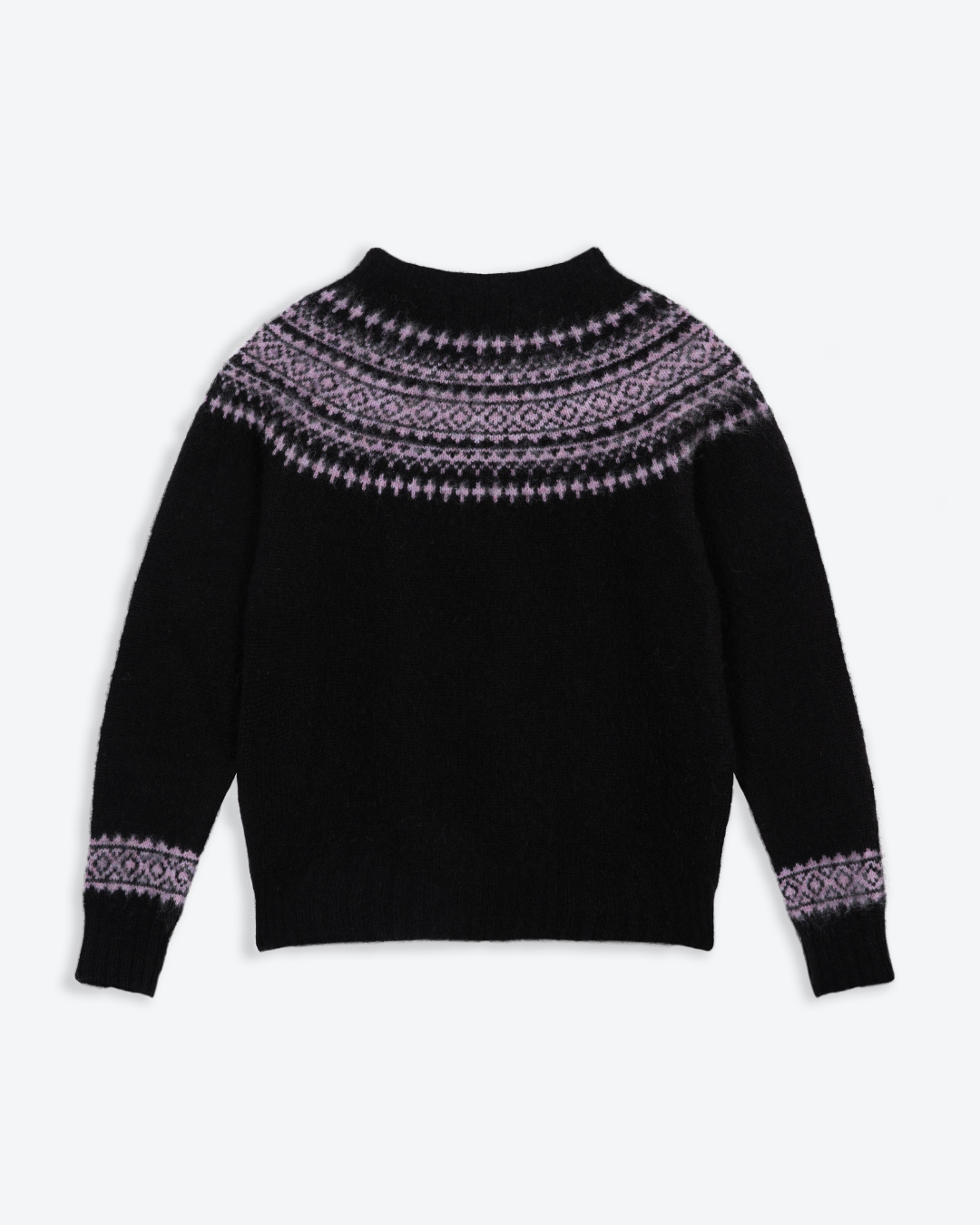 Lowie’s much-loved snow jumpers are made in Peterhead, a small fishing port in Scotland, by one of the few remaining knitwear suppliers in the UK. Knitted from 100% Scottish spun lamb’s wool with traditional Fair Isle style knit design around the neckline and cuffs.