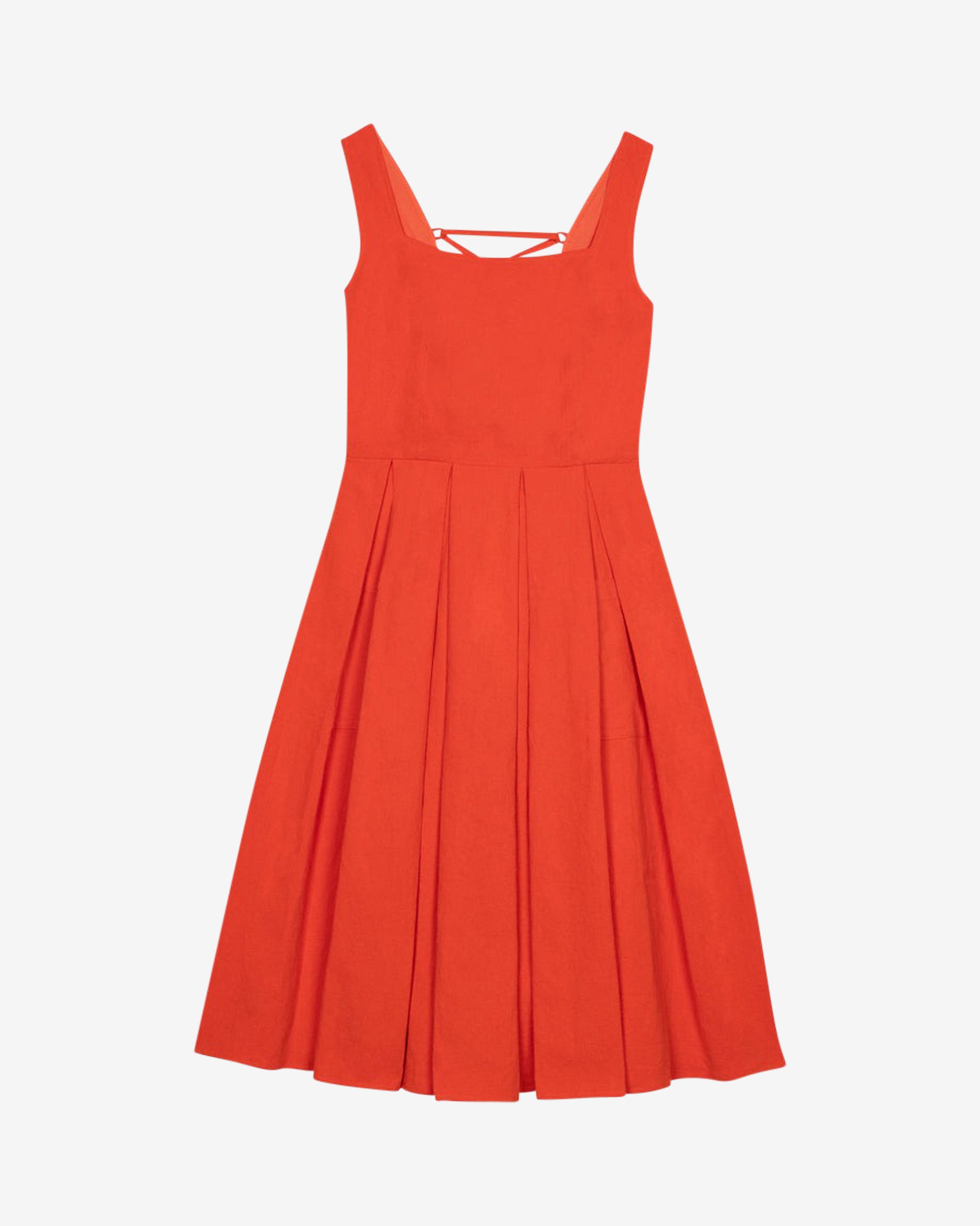 FEATURES: Midi length, open back lacing details, fitted bodice