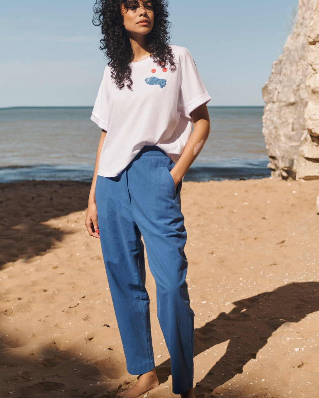 These trousers are crafted from a breathable, textured cotton-linen blend in a mid weight vibrant cobalt blue. Designed with a streamlined barrel silhouette, they have a single-button waistband, smooth front with two welt pockets and an elasticated back. Cut to a full length with a high waist and gently tapered leg, they can be turned-up at the hem for an easy, everyday fit.
